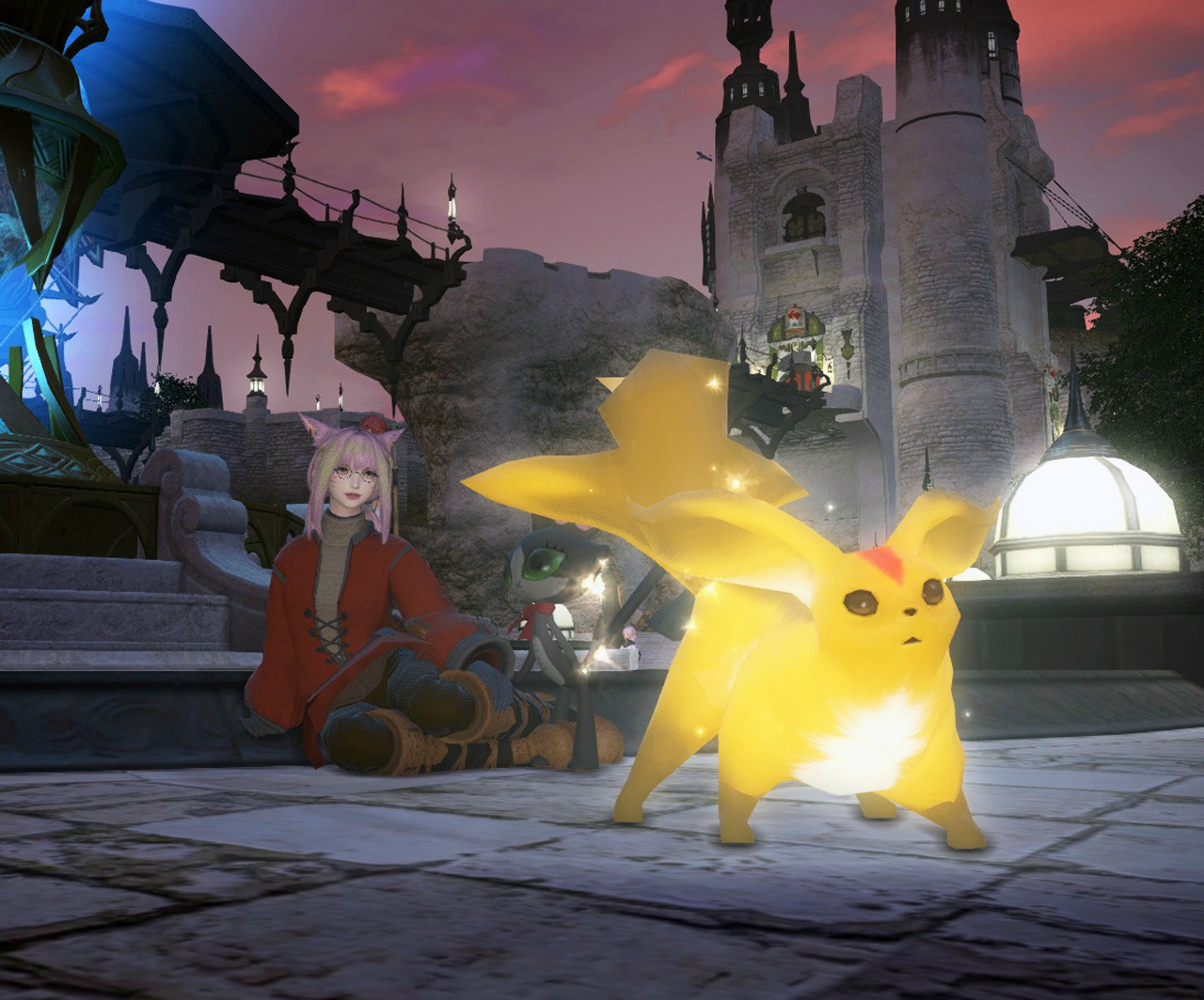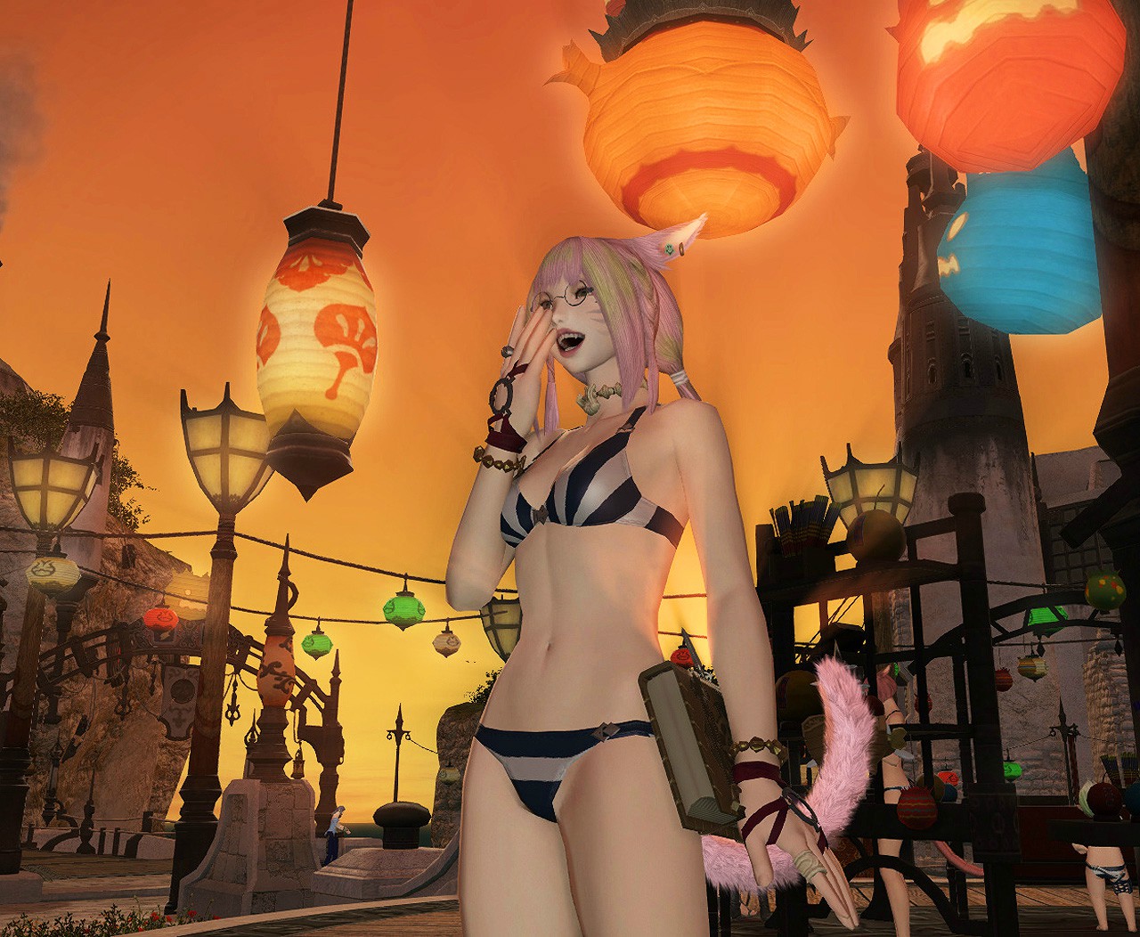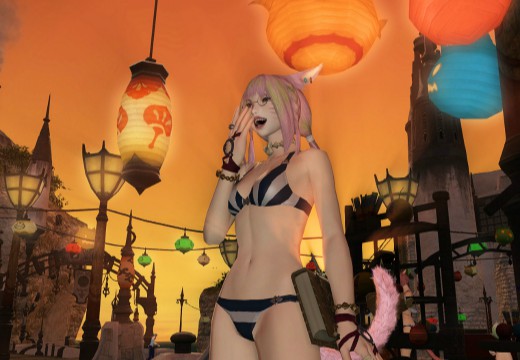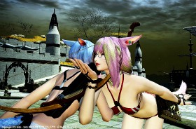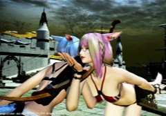 オアシスでは先輩のミコッテから男を誘惑するポーズの指南を受けて